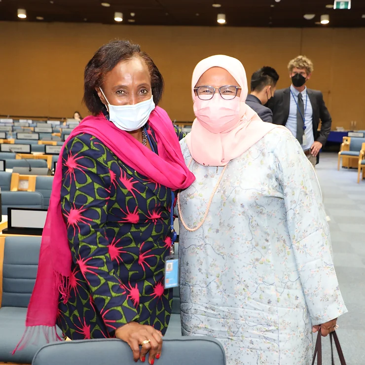 Amb. Jean Kimani, Kenya’s Permanent Representative to UN-Habitat with UN-Habitat Executive Director Ms. Maimunah Mohd Shariff at the First session of UN-Habitat Executive Board meeting 2022.