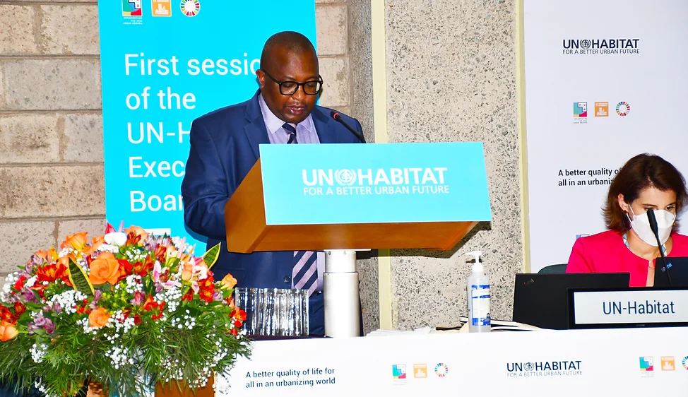 Housing and Urban Development Principal Secretary Charles Hinga on 29th March at the opening of the first Session of the Executive Board of UN-Habitat 2022, reiterated Kenya’s commitment to the implementation of the New Urban Agenda through the strengthening of established frameworks like the HCPD 2022-2025 and Kenya’s Big Four Agenda that prioritizes housing as a major pillar of Kenya’s Medium term plan.