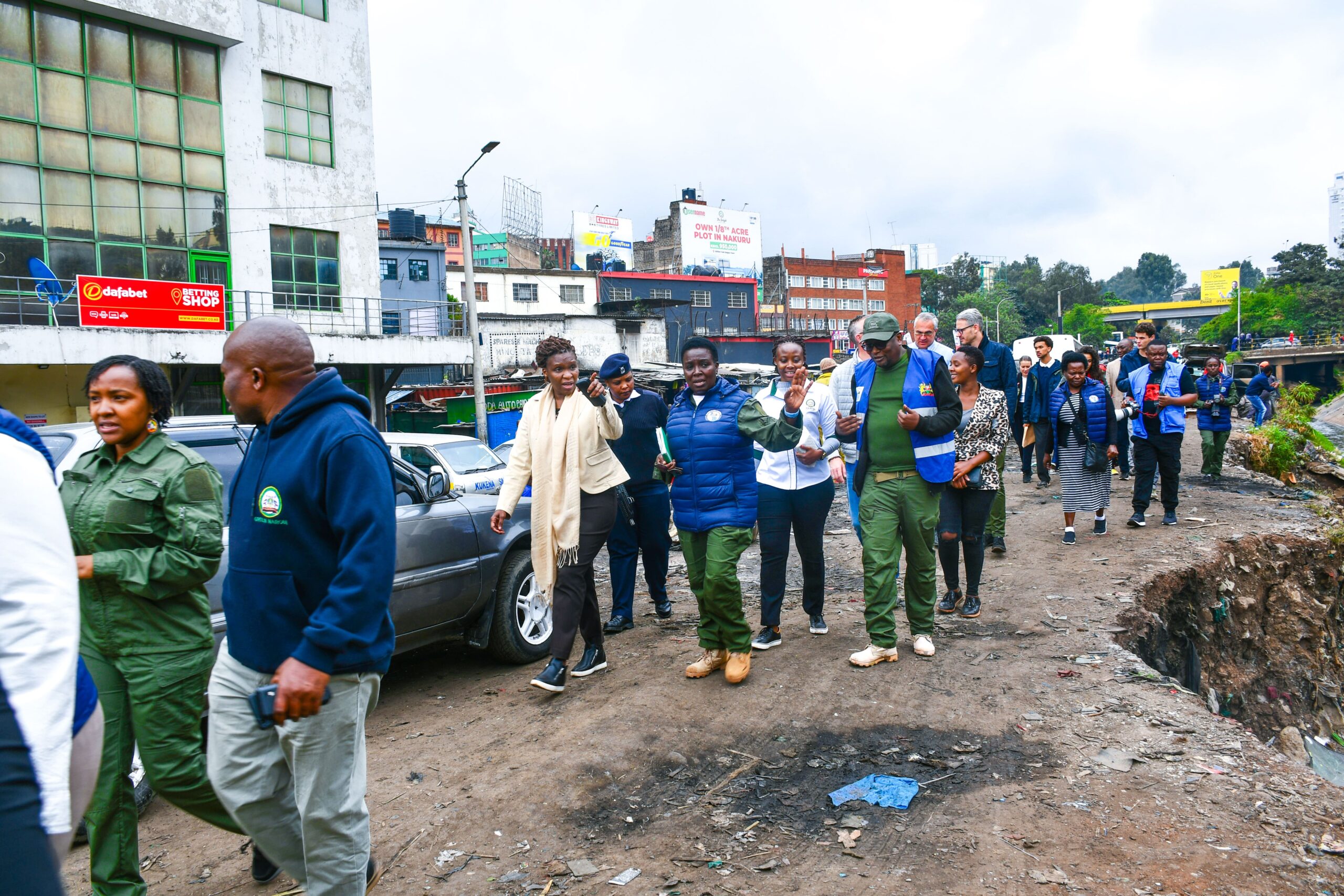 H.E Amb. Grace Okara pictured with members of the Diplomatic Corps during the Nairobi River walk 22August 2024
