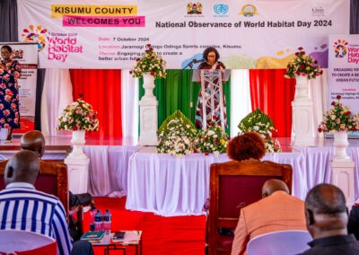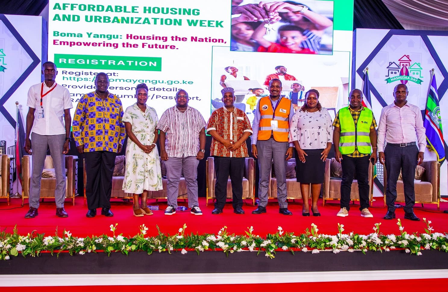 H.E Amb. Grace Okara pictured in group photo of panelists at the Boma Yangu week, Kwale County October 2024