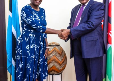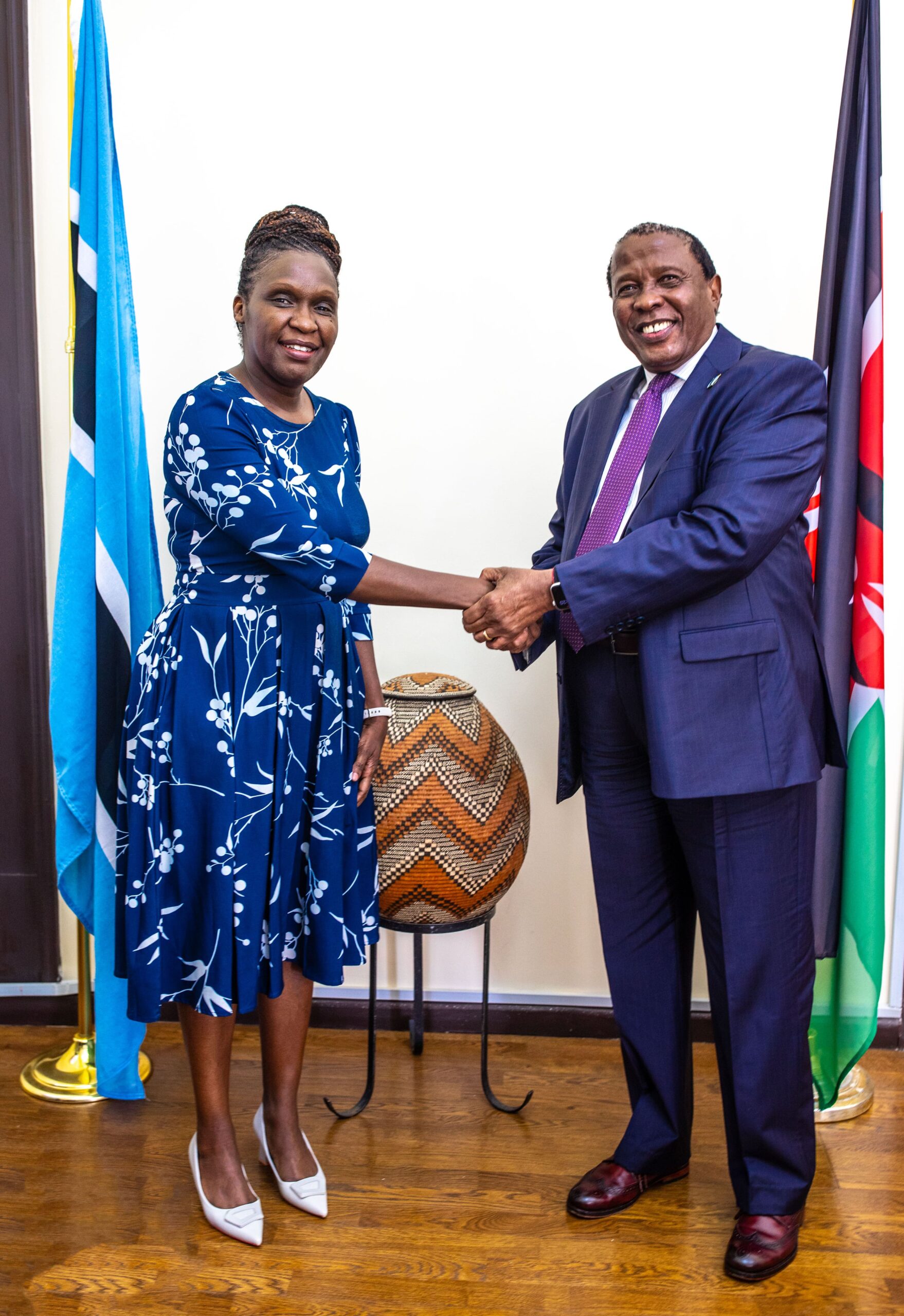 H.E Amb. Grace Okara pays a courtesy call to H.E Duke Lefhoko, High Commissioner of the Republic of Botswana to Kenya.