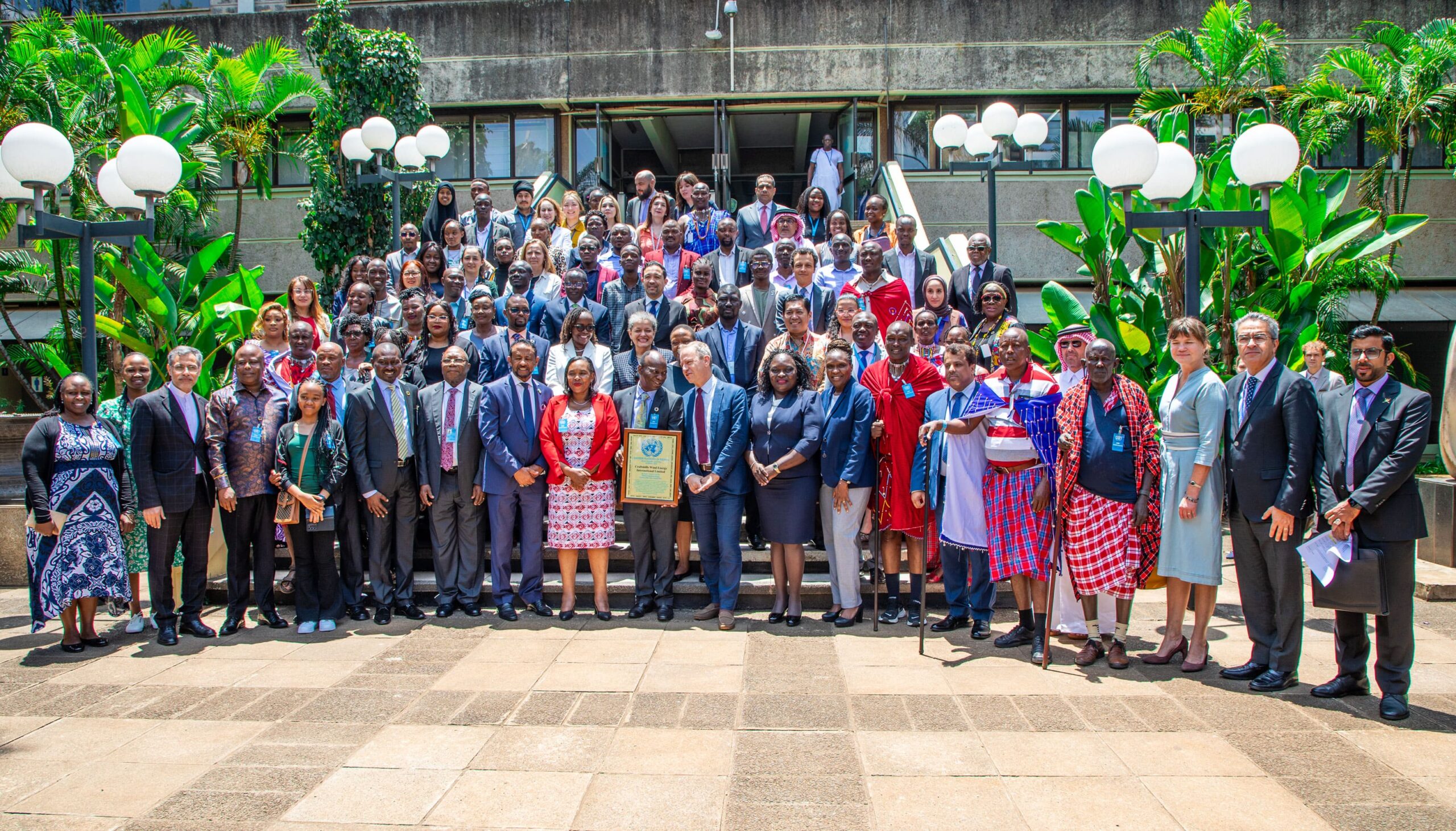 H.E Amb. Grace Okara pictured with Members of the Diplomatic Corps at UNON Grounds during the commemoration of UN-Day 2025